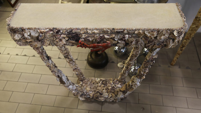 Tra i Nuovi Arrivi di Tarabacli – il mercatino dell’usato di Parma – è disponibile una piccola consolle francese, in ottime condizioni, rivestita di conchiglie