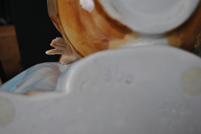 Manifattura Ronzan, Statuina in Ceramica Anni ’70, su disegno dei primi modelli anni ’30. Si nota la delicatezza dei tratti e del decoro acquisita nel percorso lavorativo di Giovanni Ronzan presso Lenci. La Statuina in ceramica che trovate presso il nostro negozio è risalente al 1970 ca. Ciò è dimostrabile grazie alla particolare firma posta sul fondo. Ogni epoca della manifattura ne possiede una differente. Proveniente dalla fabbrica di Antonio Ronzan di Torino.